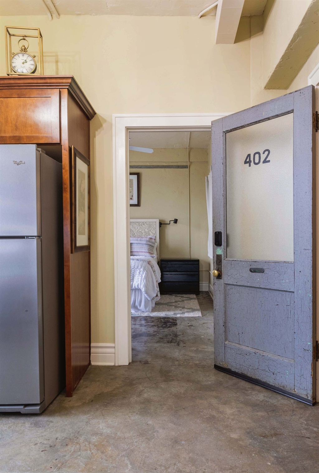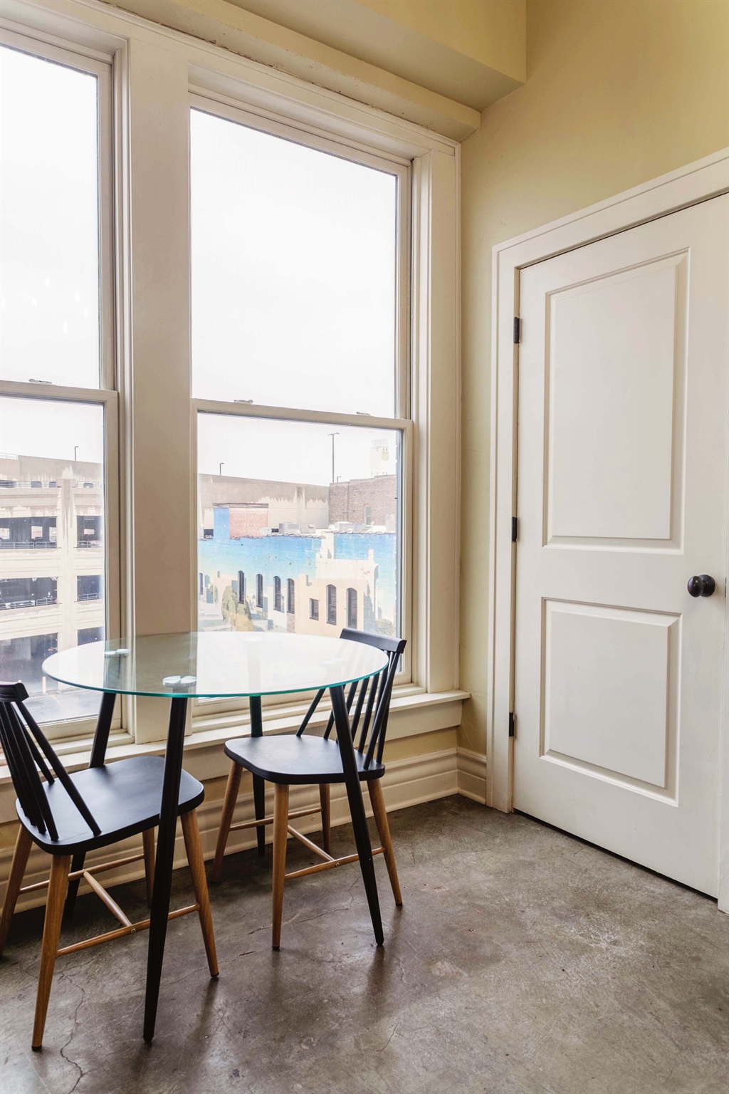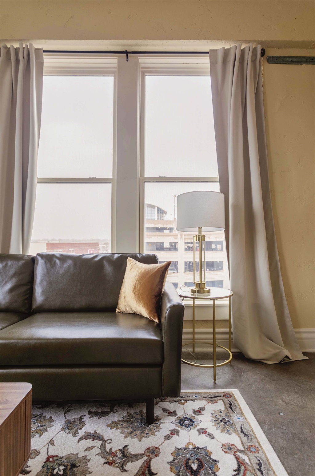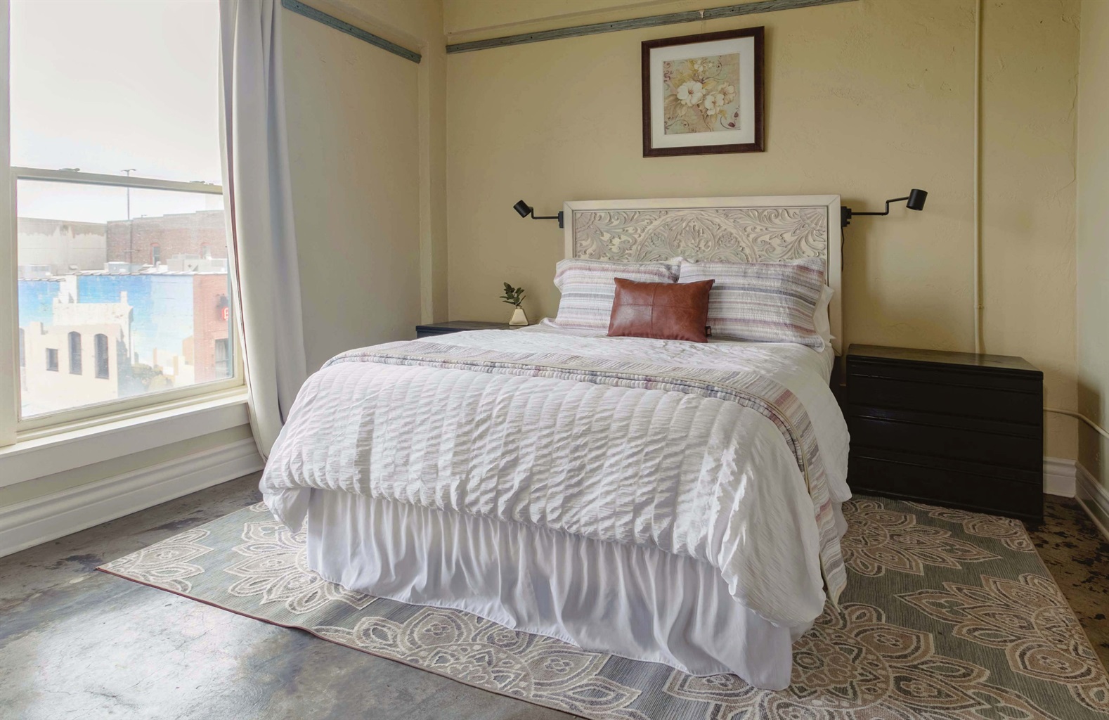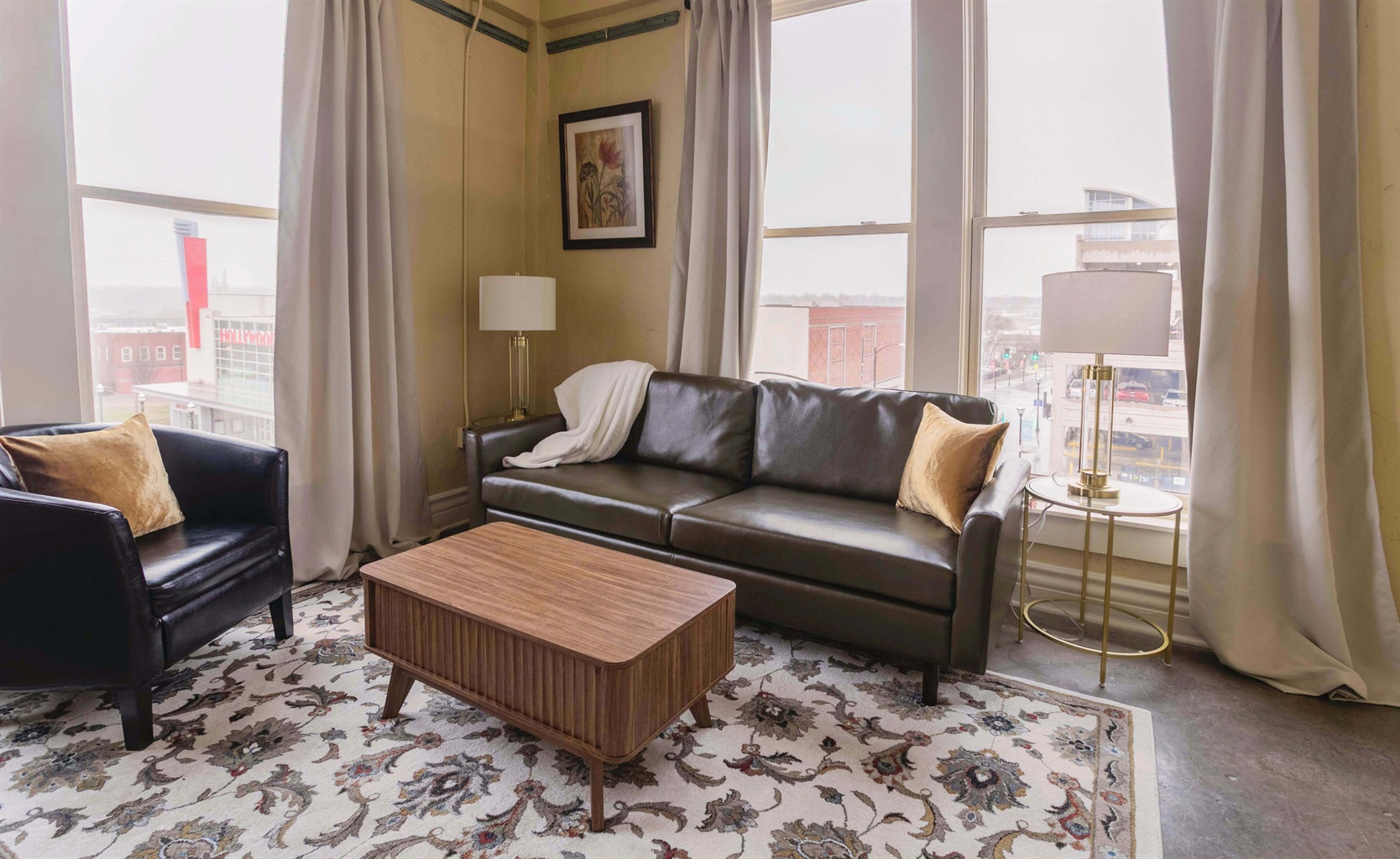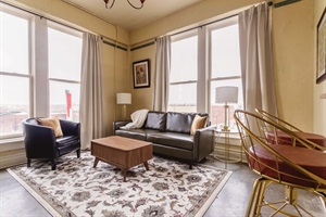2 Bedrooms • 1 Bathroom 1 Bath • Sleeps 1-5Right off the Square in downtown Springfield, this private 4th floor apartment has a fantastic feel for those needing a secure and centrally located space. Spread out on the sofa in front of the LCD TV with streaming capabilities. Beautifully open space and sprawling natural sunlight will allow you a comfortable stay. Prepare your own meals in the updated kitchen with full size fridge, sink and countertops. Microwave, toaster and oven provided for all your cooking needs!